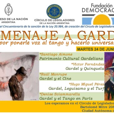 «Gardel y Quinquela», será el título de la charla que tendré el placer de ofrecer en el marco de esta actividad organizada por el Círculo de Legisladores de la Nación Argentina. Será el martes 24 de junio a las 18 hs., en Bartolomé Mitre 2087, 1er. piso, CABA